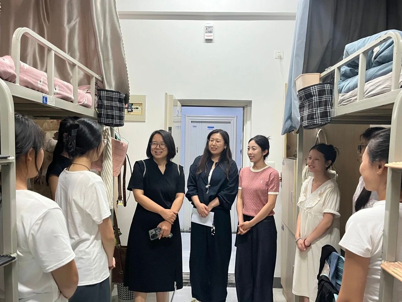 为深入了解学生暑期生活与思想动态,为新学期工作开展筑牢根基,确保学生安全有序返校。9月7日,数字文创学院党总支书记杨慧丽,及全体辅导员们深入学生宿舍,开展新学期宿舍走访慰问活动。