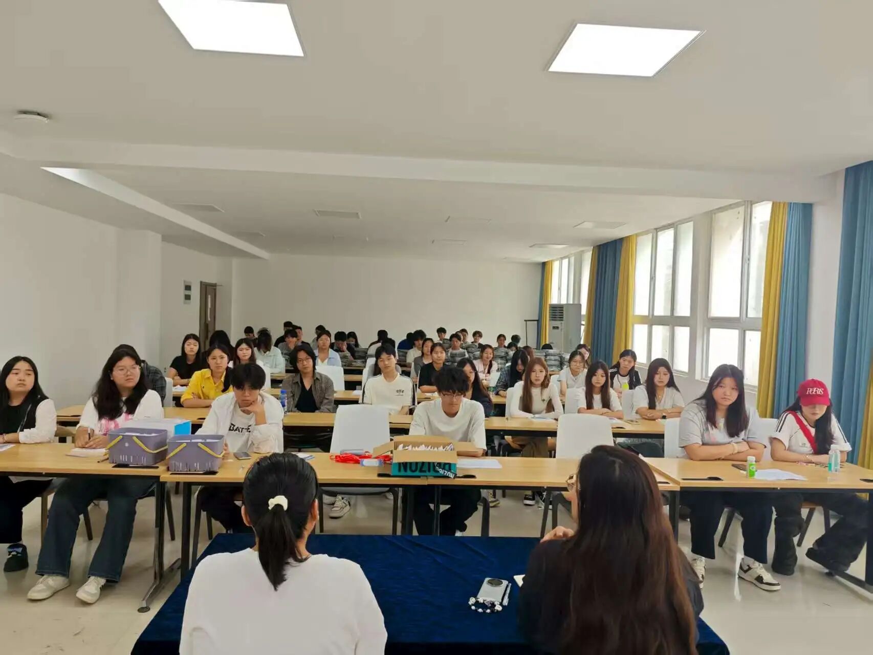 冯思源围绕新生报到流程、校规校纪、宿舍管理规定及校园安全等重点内容进行了详细说明与工作安排。她强调,学长、班副应充分发挥引导作用,各司其职,协助班主任、辅导员做好新生迎新工作,帮助新生快速适应校园环境,确保入学各项工作顺利推进。学长、班副们认真聆听、详细记录,明确了自身职责与任务要求。