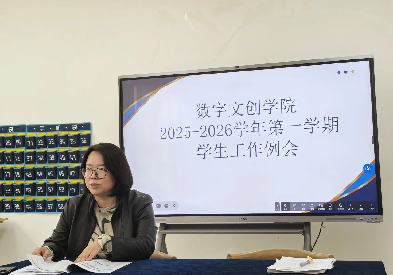 10月14日下午,数字文创学院在7B102室召开2025-2026学年第一学期第三次学生工作例会。学院党总支书记杨慧丽、全体专职辅导员参会,会议由团总支书记冯思源主持。会议围绕学生安全、日常管理及育人创新展开工作安排,旨在夯实工作基础,护航学生全面发展。