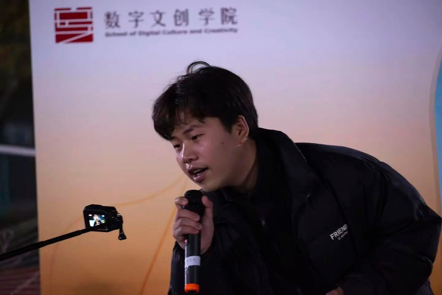 活动全程,现场观众的热情始终高涨。不少兄弟学院的同学和老师被浓厚的音乐氛围感染,纷纷跃跃欲试地向工作人员询问“能否上台唱一首”,还有一位男同学主动走到台前,为大家带来了一段即兴Bbox表演——连贯的节奏、多变的音型极具感染力。