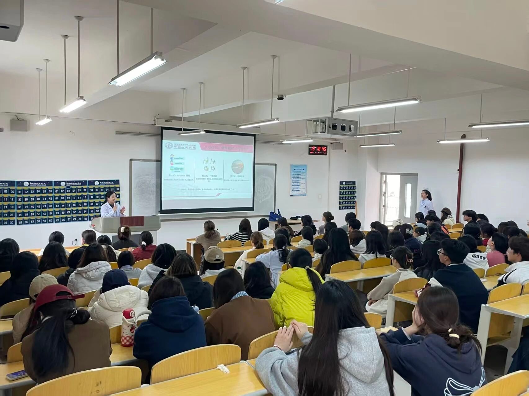 活动伊始,郑州人民医院眼科专家钱堃医生走上讲台,凭借丰富的临床经验和深厚的专业知识,开启了一场生动有趣的眼部健康知识讲座。钱医生从眼睛的生理结构讲起,深入浅出地剖析了常见眼部疾病如近视、远视、散光等形成原因,让学生们对眼睛这一精密“光学仪器”有了更直观的认识。此外,她还分享了一系列简单有效的眼部放松方法,鼓励学生在课间休息时积极运用这些方法缓解眼部疲劳。讲解过程中,学生们聚精会神并积极提问,钱医生耐心细致地一一解答,现场氛围热烈而融洽。