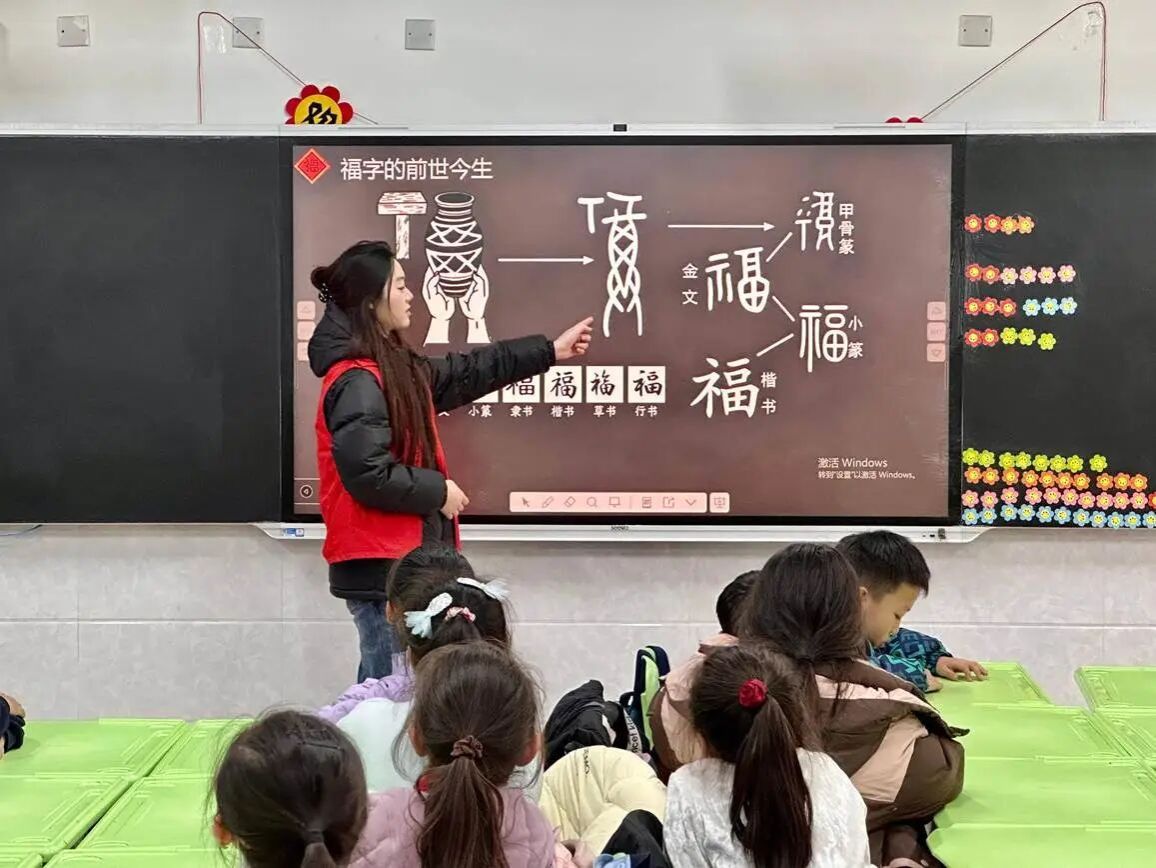 学生干部孙瑞龄讲解“福”字的形态