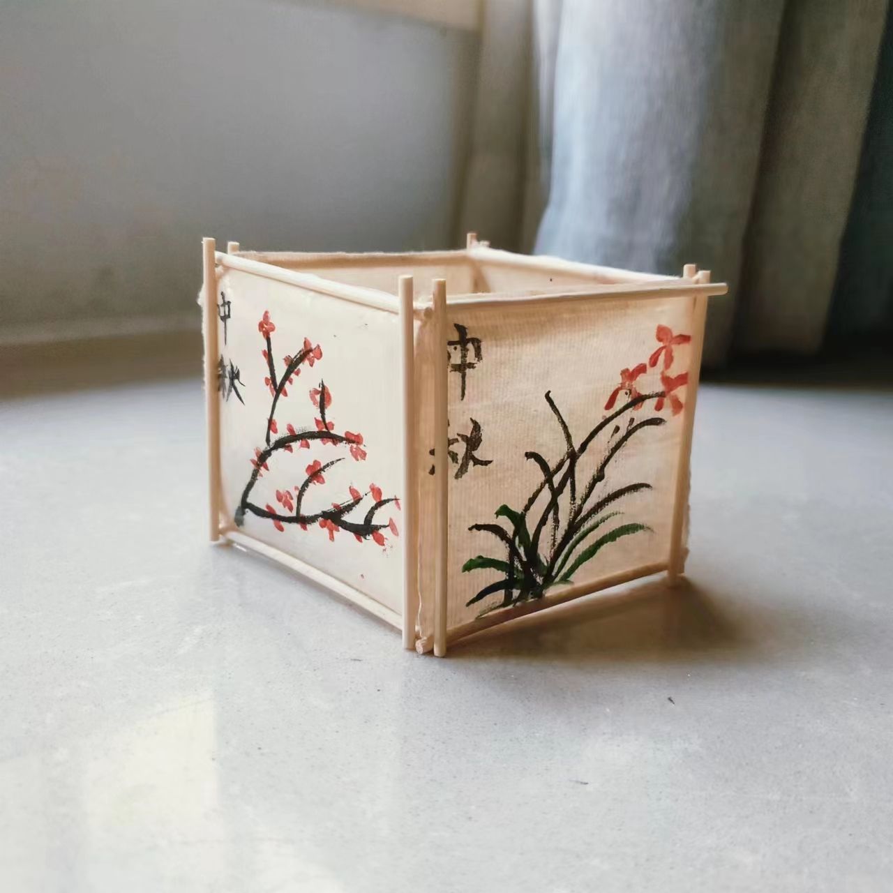 中秋之夜,自古有燃灯以祝月的风俗。古风花草灯,运用古法造纸的技术,以竹木为骨架支撑,以花草装饰点缀,在朗朗明月夜,将它点亮,共赏明月。