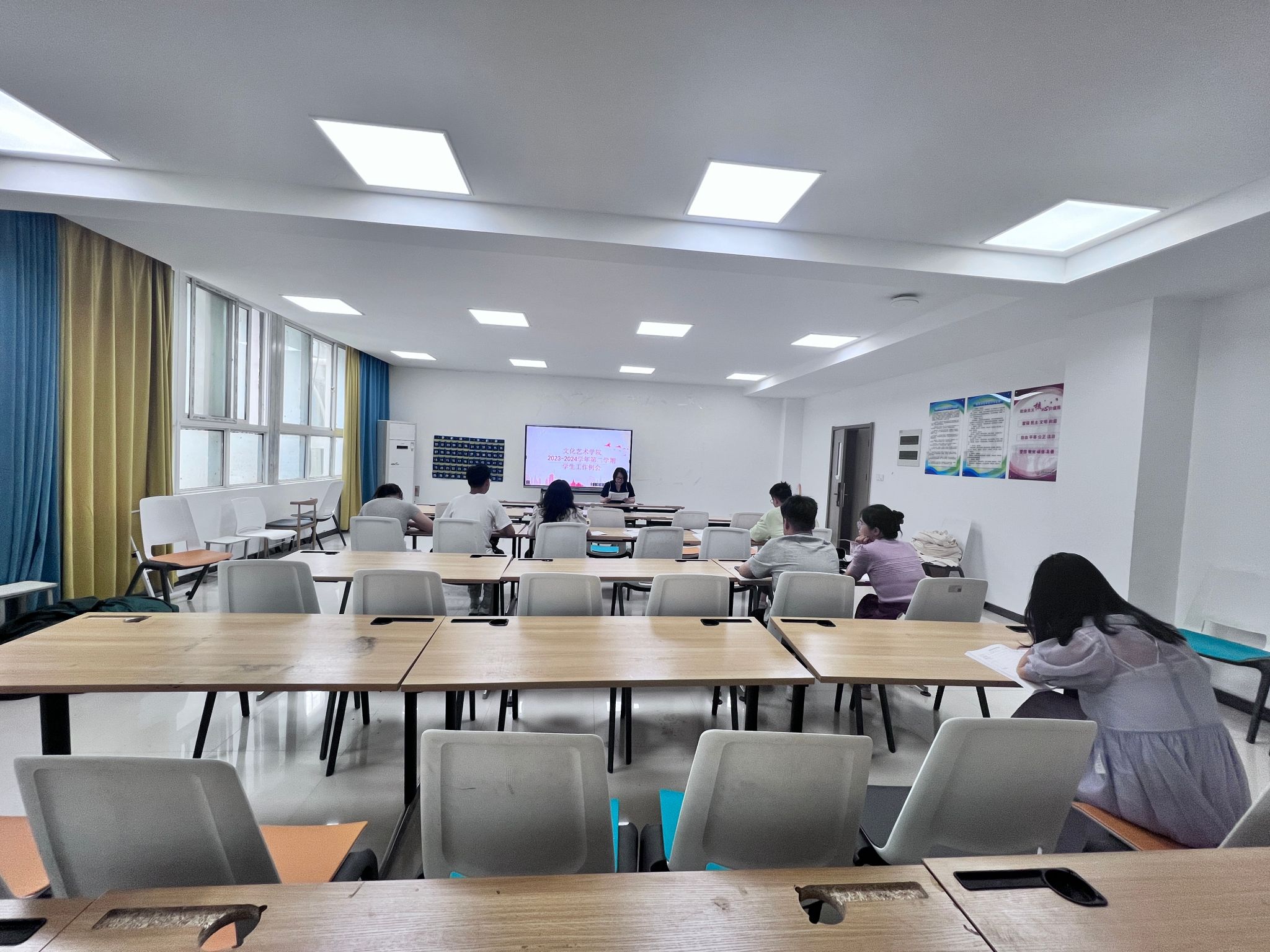我院于6月4日在7B102室组织召开第七次学生工作例会。此次会议由党总支书记杨慧丽主持,团总支书记冯思源以及全体专兼职辅导员参加会议。