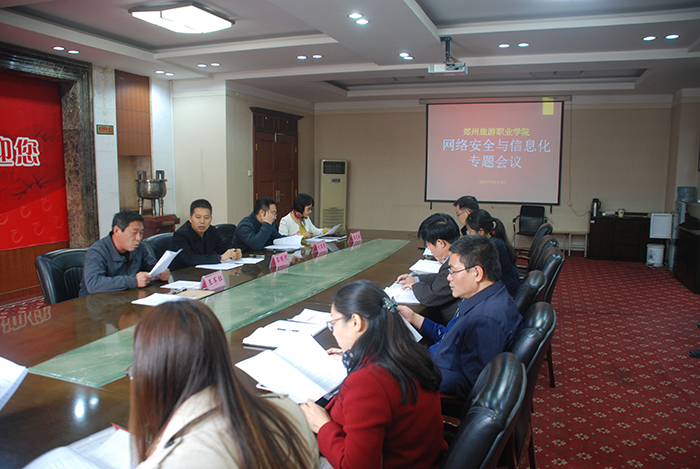 2017年11月9日上午10时,学院网络安全和信息化领导小组办公室第一次会议在接待室举行。会议由办公室成员、信息网络中心主任张之红主持,工会主席兼领导小组办公室主任石国河、宣传部部长刘亚东、保卫处处长王军红等领导小组办公室成员及学院各部门负责人参加。