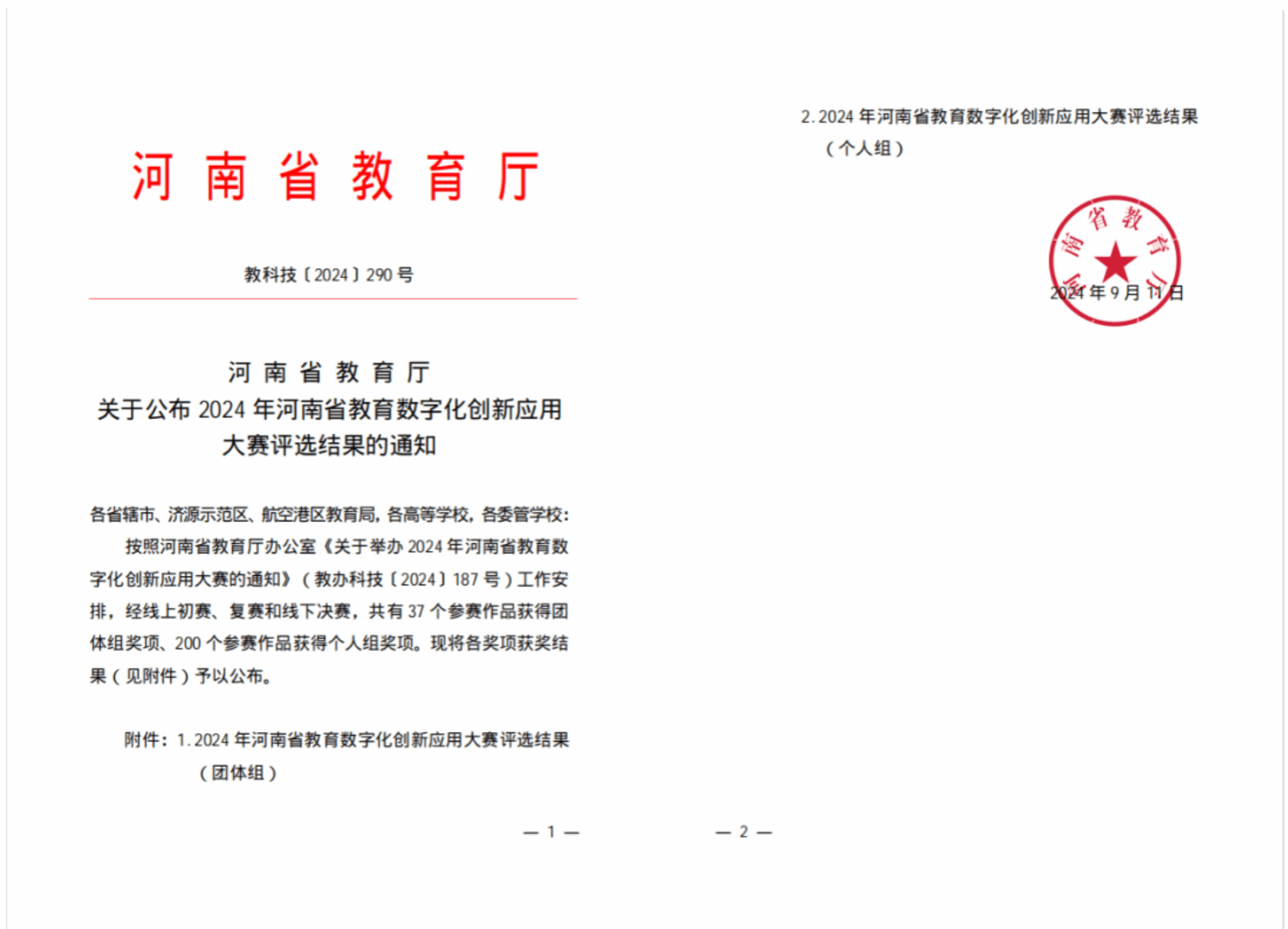近日,2024年河南省教育数字化创新应用大赛落下帷幕,此次比赛为了深入实施教育数字化战略行动,以推进数字化背景下的教育理念、教学模式和教学管理流程的重构为目的,鼓励引导广大教育工作者积极融入教育数字化转型应用探索。