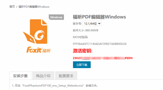 (3)福昕PDF使用激活码激活,激活码见下载页面。