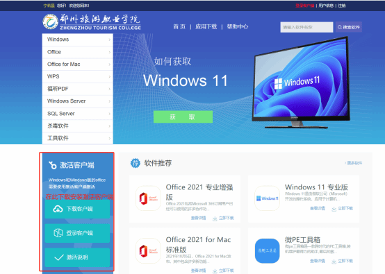 为推进正版软件化工作,满足在校师生对操作系统、办公软件的需求,学校采购了相关软件正版授权,建设了正版化软件管理服务平台,为校园网用户免费提供正版软件下载与激活服务。具体使用说明如下: