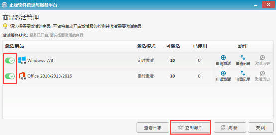 (4)登录成功后,点击左侧选项按钮,勾选需要激活的软件,然后点击“立即激活”