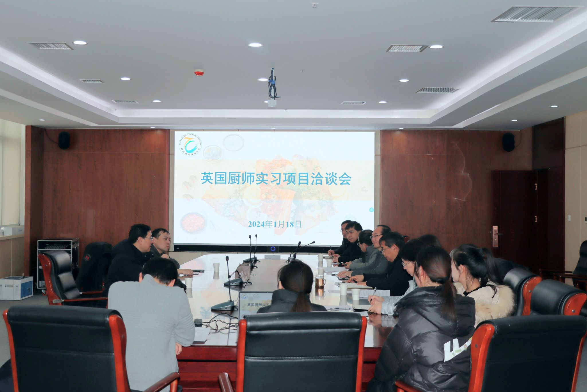 焦建功首先介绍了英国厨师实习项目的现状、需求和实习要求。随后双方就学生赴英手续办理、实习岗位安排、工资待遇以及安全等问题进行具体商谈。