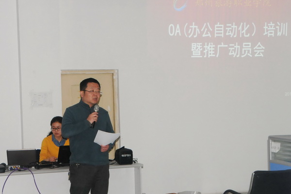 4月14日上午,我院举办了校内OA办公系统培训暨推广动员会。院长樊豫陇、副院长张建军出席活动。行政副科级以上、系(部)正科级以上和系办主任参加了培训。