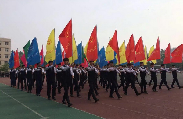 党委书记岳俊华宣布运动会开幕。国旗护卫队、花束队、裁判员代表队、教师代表队和各系代表队依次入场, 花束表演队和武术表演队以其独特的创意为大家带来了运动盛宴。