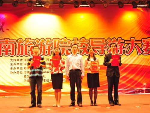 为贯彻落实国务院《关于加快发展旅游业的意见》的精神,促进旅游院校的专业教学水平和导游服务技能的提高,河南旅游院校第一届服务技能(导游服务)大赛于5月26日在海洋之神590登录入口开幕。共有来自全省34所院校的代表队的56名优秀选手参加了此次大赛。经过激烈的角逐,我院选派的两名选手旅游管理系张萍同学不负重望、技压群雄,获得了全省总分第一名的好成绩,一人夺得全省“最佳讲解奖”和“最佳才艺奖”个人单项奖桂冠;我院派出的旅游管理系另一名选手陈梦达同学也同时获得二等奖,两人同时被河南旅游协会授予“优秀选手”称号。组委会同时对我院颁发了“突出贡献奖”和“优秀组织奖”,旅管系余高峰老师获得“最佳辅导奖”。