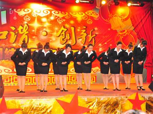接下来,旅游外语系第二代表队为同学们带来了日本茶道表演,韩国、俄罗斯舞蹈以及与扇子有关的礼仪。然后,由机电系代表队向同学们展示基本礼仪动作和情景剧。同学们的加油呐喊声此起彼伏,现场气氛十分高涨。酒管系两个代表队紧跟其后,表演了和自己专业相结合的餐饮舞蹈。最后出场的是旅游管理系第二代表队,他们的基本礼仪动作准确到位,整齐统一,赢得了老师和同学的一致赞可。他们的华尔兹舞蹈也博得了阵阵掌声。