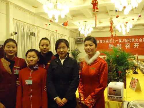 在校经过人员选拔及专业培训后,于1月11日早9点抵达河南省河南饭店。此时正是我院放假的第一天,当大多数同学背上行囊返回家乡的时候,他们却在工作岗位上无闻的奉献着。她们以高昂的精神面貌,过硬的专业服务技术,尽善尽美的服务态度赢得了广大代表以及酒店管理层的好评,这从中也不乏有些让人感动的人和事。同学们深知此次会议的重要性,当困难来临时她们都变现的异常坚强。胡妍妍同学就是其中的一名,她在工作中不慎将胳膊摔伤后,酒店领导劝其休息,她不但没有因此请假,而且在去过医院的第二天便回到了工作岗位,酒店的管理者也因旅院培养出这样敬业的学生而深受感动。