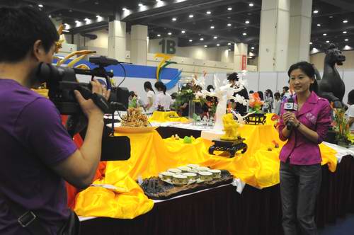 省市多家媒体对我院参展情况进行报道。图为郑州市电视台在我院展台前录制节目