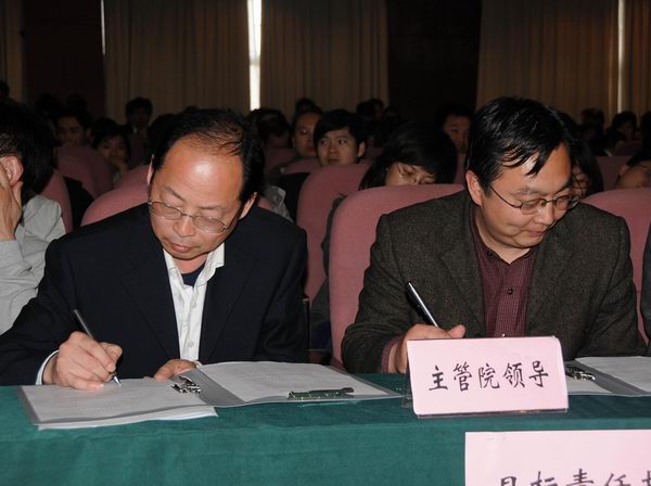 接着,我院安全责任人陈锡畴院长分别与分管副院长陈雪阳、张建军签订了安全管理目标责任书。两位副院长也与分管部门、系(部)现场签订了目标责任书。
