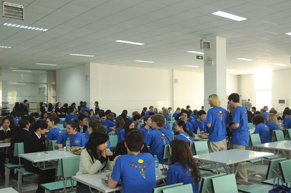 随后,我院师生与美国伊利诺伊州高地公园中学师生一起包饺子。陈锡畴院长在教工餐厅宴请了代表团全体成员。