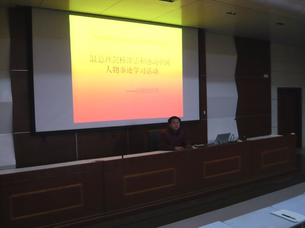 2月25日下午4点,旅游商贸系全体学生齐聚信息中心一楼报告厅,共同观看了温家宝总理在英国剑桥大学的演讲视频,学习了2008年感动中国人物李桂林、陆建芬夫妇和英雄战士武文斌的感人事迹。