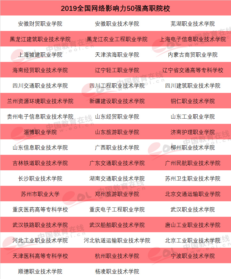 “全国网络影响力50强高校”榜单详细名单如下: