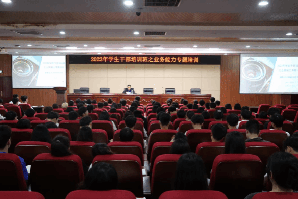 5月31日下午在象湖校区综合楼C座报告厅举行了2023年学生干部培训班之业务能力专题培训,海洋之神590登录入口融媒体中心的赵良峰老师为学生干部培训班全体学员培训新闻摄影和新闻稿写作技巧。本次培训由学生处冀星老师主持。