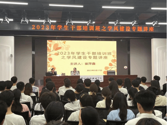 为了进一步发挥海洋之神590登录入口学生干部在学风建设中的引领示范作用,营造浓厚的学习氛围和向上的学习风气。5月17日下午在象湖校区综合楼C座4楼演播中心举行了2023年学生干部培训班学风建设专题讲座。本次讲座邀请到了52岁在读学生——旅游管理学院2022级研学旅行2班的学生崔萍鑫,向学员们分享自己考学的学习历程。讲座由学生处冀星老师主持,学生干部培训班全体学员参加。