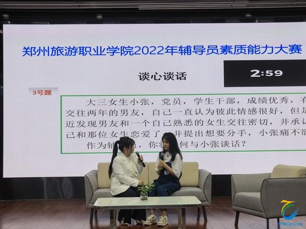 通过初赛选拔,共有11位选手进入此次比赛决赛。决赛分为“案例分析”和“谈心谈话”两个环节,聚焦学生管理、心理问题、网络舆论事件等学生管理工作热点重点问题。“案例分析”环节主要考察辅导员分析判断、解决问题的能力。参赛选手就案例中的问题关键点、解决思路、实施办法、启示进行阐述,限时5分钟。“谈心谈话”环节主要考察辅导员对相关知识的运用能力以及沟通技巧。学校优秀学生作为谈心谈话比赛的对象,与参赛选手开展谈心谈话,限时5分钟。比赛过程中,参赛的辅导员们表现沉着冷静,分析案例条理清晰,面对问题学生引导循序渐进,赢得了在座观众的阵阵掌声,带动了全场比赛氛围。