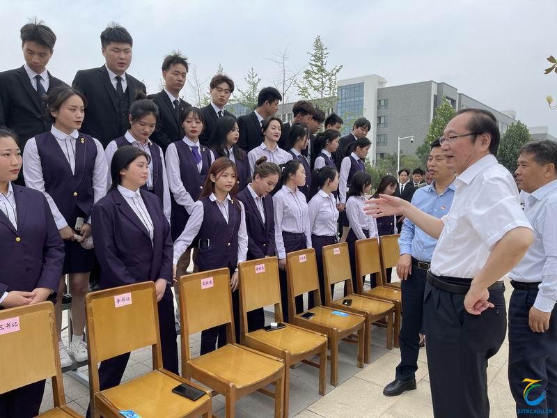 在随后的整个合影过程中同学们精神抖擞、着装整齐、激情洋溢,每一次合影结束,同学们总是按捺不住激动而喜悦的心情,自发鼓起热烈的掌声!合影时,李书记、文校长与同学们亲切交谈询问大家学习和即将离校实习的情况,并祝福大家事业发展、生活幸福,用努力奋斗为祖国的伟大复兴贡献力量,为母校增光添彩。