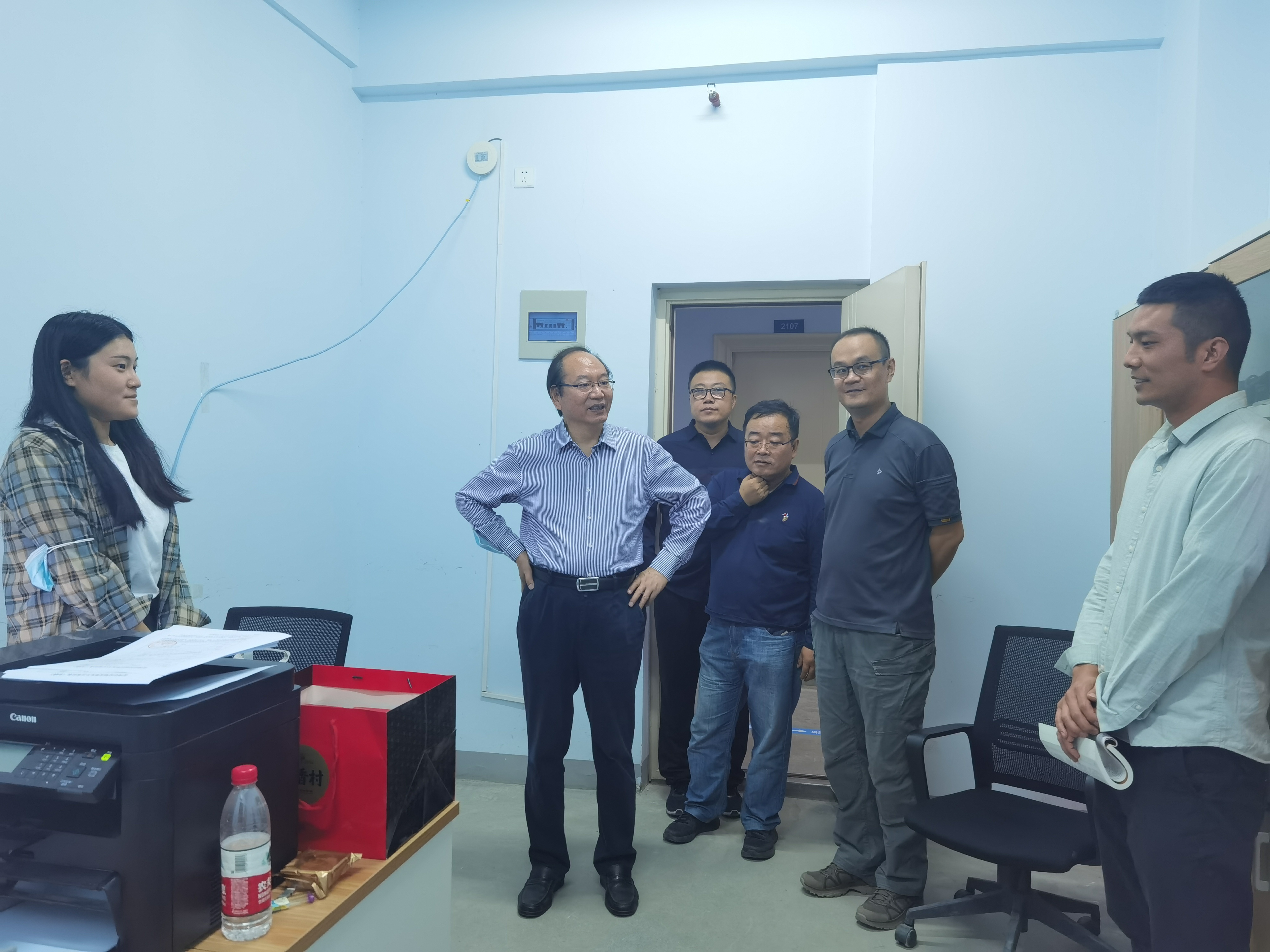 10月1日晚,值此国庆与中秋双节之日,海洋之神590登录入口领导文广轩校长、王振超副校长带着月饼慰问值班学工教师。酒店管理系主任李晓东、学生处副处长宋亚卿等相关院系同志陪同前往。