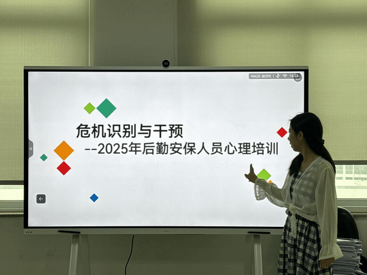 培训现场,马玲老师围绕危机识别的关键要点展开讲解,结合后勤安保工作实际场景,紧密围绕校园场景并结合真实校园危机案例,深入剖析校园危机事件类型,包括校园暴力、突发公共卫生事件、自然灾害等。在危机识别环节,马玲老师详细讲解了如何通过观察学生异常行为、言语、环境等线索,及时发现潜在风险;在干预策略方面,针对不同危机场景,制定了标准化处理流程,从事件上报、现场隔离、心理疏导到后期跟进,每个环节都进行了细致说明。同时,马玲老师着重强调后勤安保人员在危机事件中要与学校学生处、医务室、辅导员、班主任等高效联动,形成应急合力。通过对危机识别与干预专业讲解,让大家学习到危机识别与干预的重要性和如何去识别和干预的方法,实现可持续成长与发展。