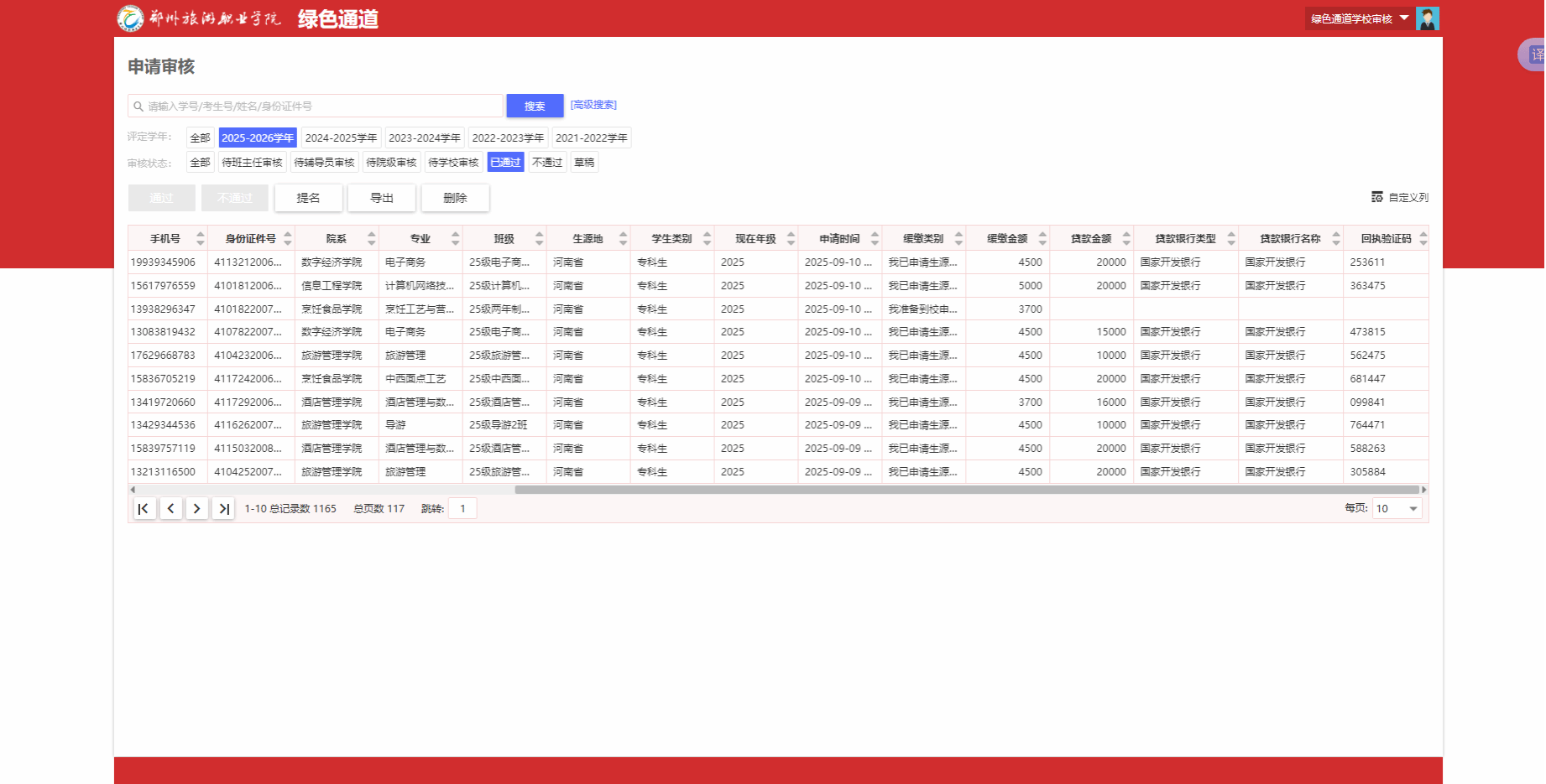 截至9月10日新生报到结束,海洋之神590登录入口“绿色通道”线上审核共1165人,贷款金额1642万元,缓交金额555万元。