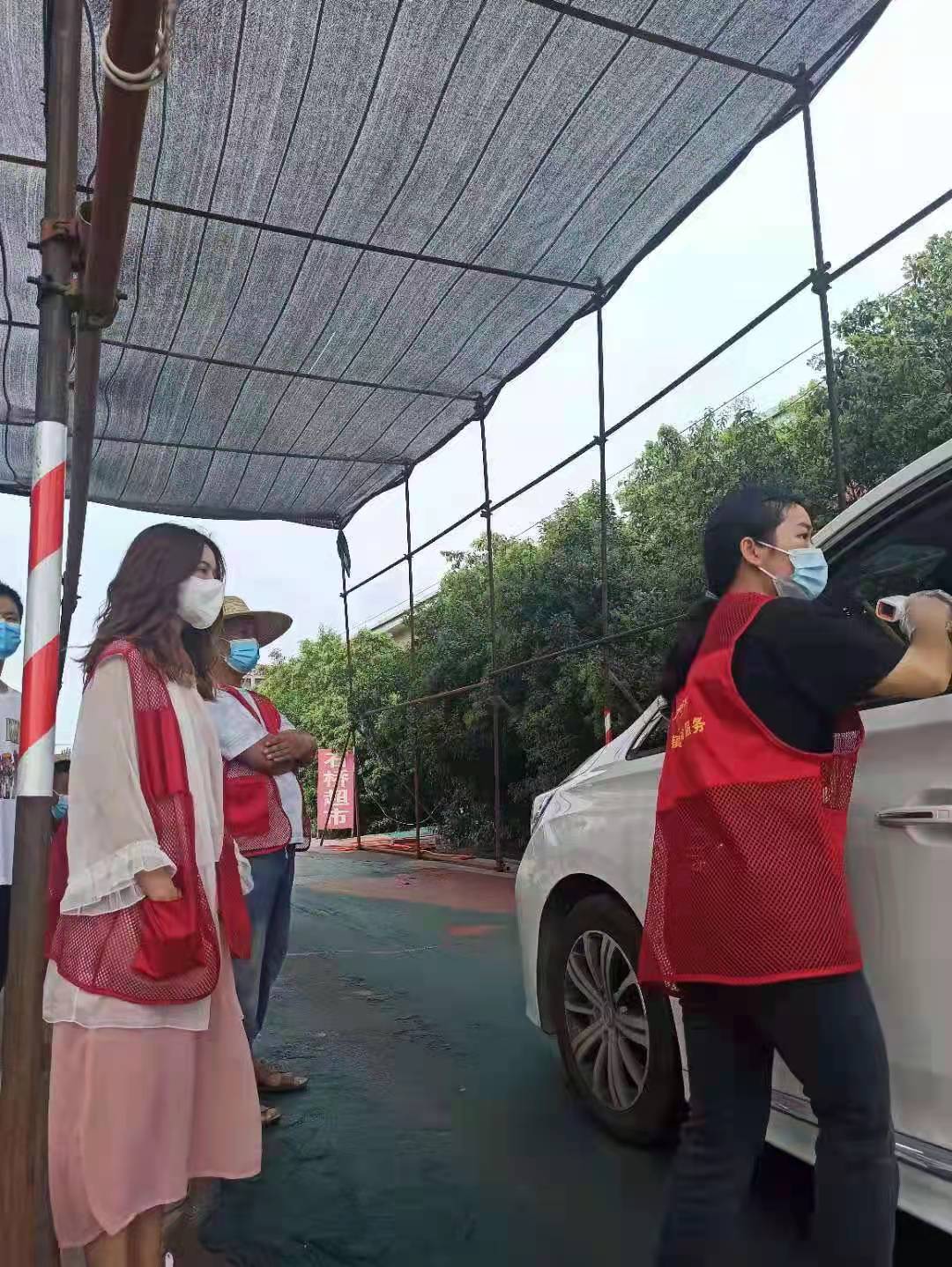 8月4日起,村委开始了疫情防控志愿者值班。每天下午13:00正值烈日高照之时,尹紫露的身影便出现在四环路口。她戴着一次性手套给来往行人和车辆驾驶员测体温、检查健康码、拿酒精喷洒消毒。每天值班到晚上19:00,6个小时的时间内,尹紫露为上百辆车辆、上千余人测过体温,查过健康码。