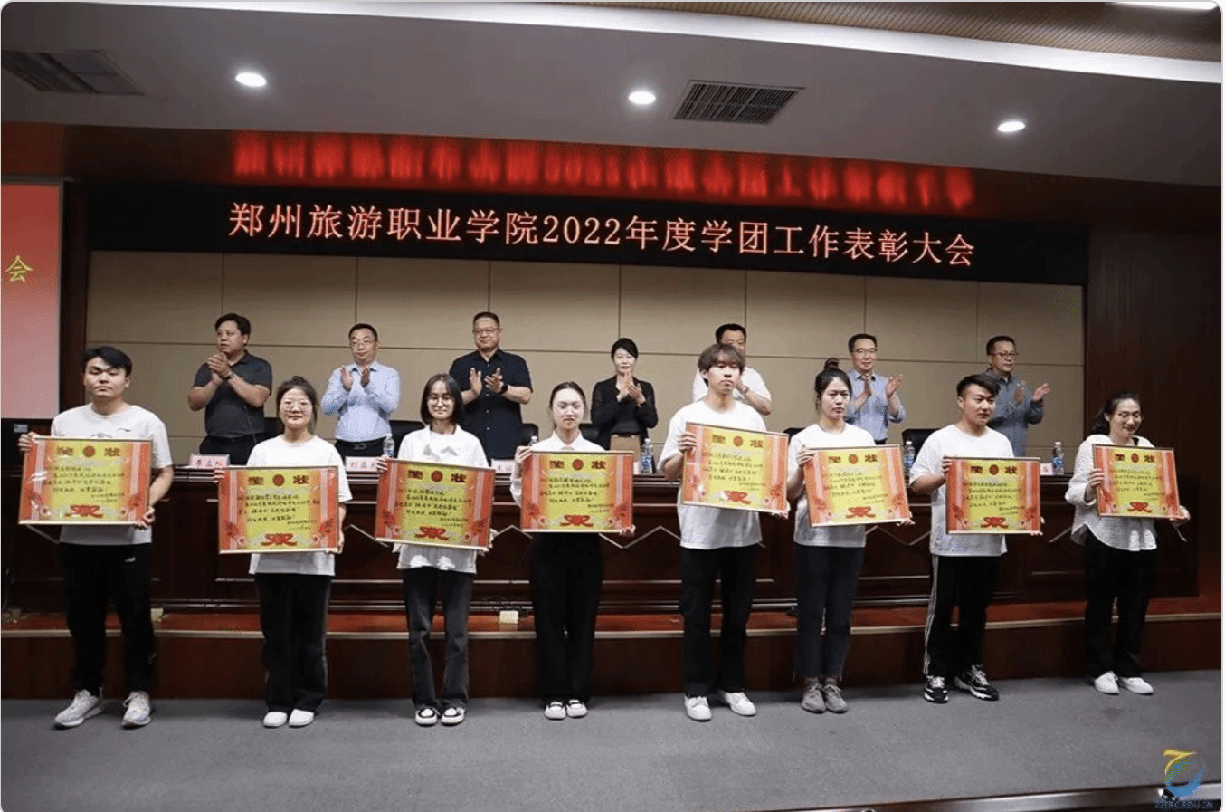 会上副校长王振超宣读了《关于表彰2022年度学生工作先进集体和先进个人的决定》与会领导为先进个人和集体颁发了荣誉证书。
