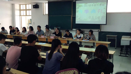 信息工程系于2016年8月31日下午两点在西教学楼301教室举行了开学典礼。参加本次典礼的有信息工程系主任朱宇、副主任潘宁、副主任杨慧丽、团总支书记李舒、学生处牛克成老师、各班班主任、辅导员老师及我系全体学生。