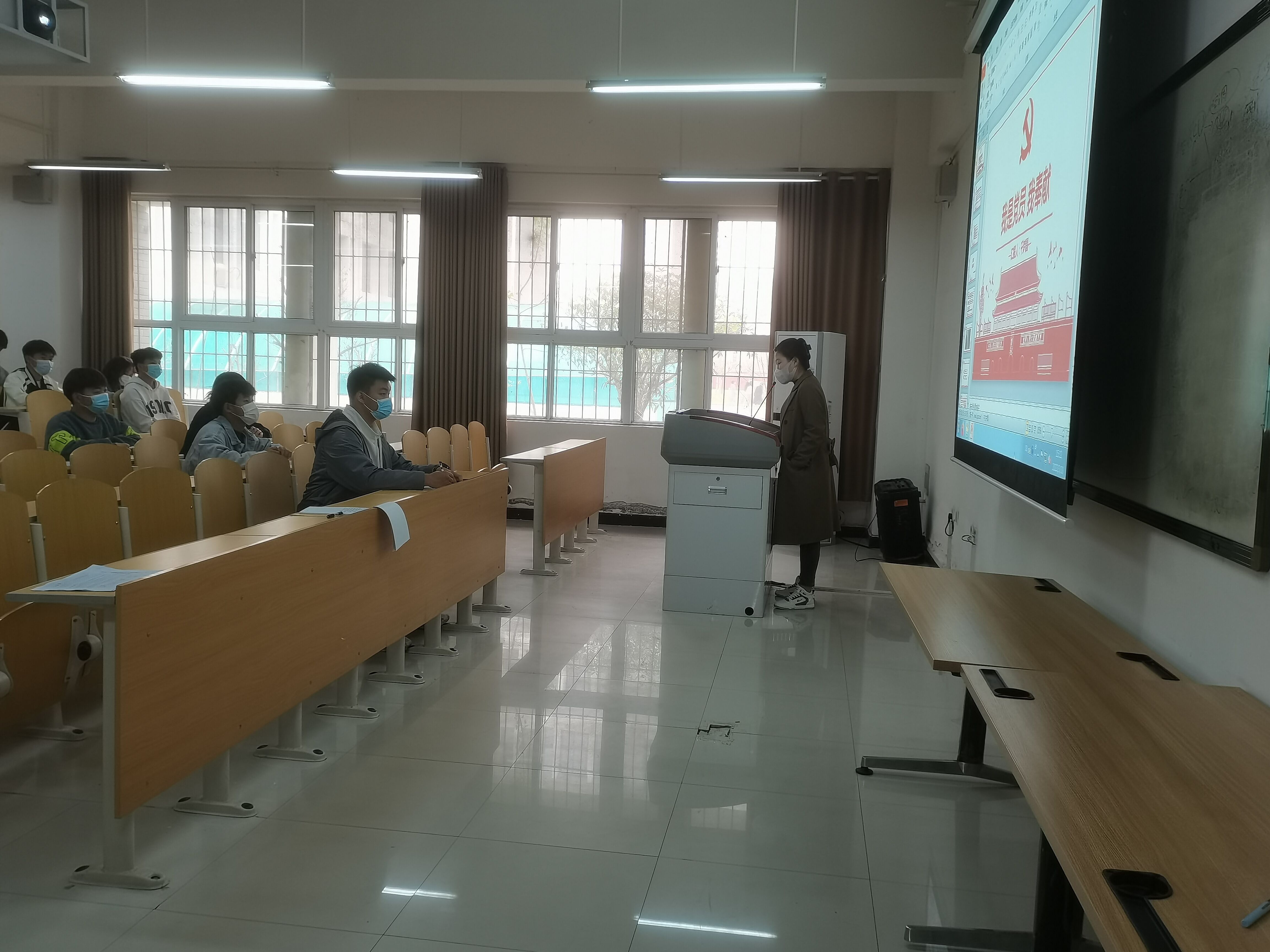 为提高同学们的思想觉悟,增强同学们的思想政治理论素养,了解党的基本知识,2022年3月30日,信息工程学院在4B111进行了主题为“我是党员 我奉献”的主题党课。本次党课由辅导员千梦圆主讲,2021年度入党积极分子参加。