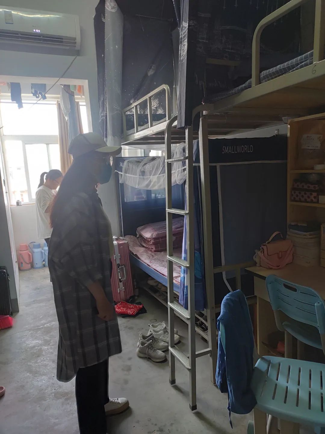 5月4日一早,千梦圆和其他值班老师就开始了巡楼,协助学生解决远程上课出现的问题,维护班级网课秩序。下午,进学生宿舍检查学生卫生打扫情况。晚上,再次巡查宿舍,避免出现夜不归宿和违禁品,并安抚学生的情绪,告知大家有需要及时求助他们。