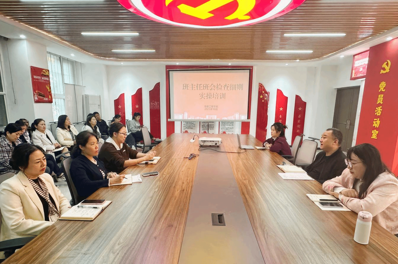 会上,付佳围绕“班会检查细则落地与新生教育实效提升”为核心展开实操讲解,她详细解读班会“基础达标+特色创新”考核机制,基础分聚焦教育核心内容的落实情况,涵盖班会记录完整性、学生参与度等指标;创新分则鼓励班主任结合专业特色与年级特点,设计“编程技能交流”“信息技术前沿分享”“职场能力提升”等主题班会,增强教育针对性与吸引力。