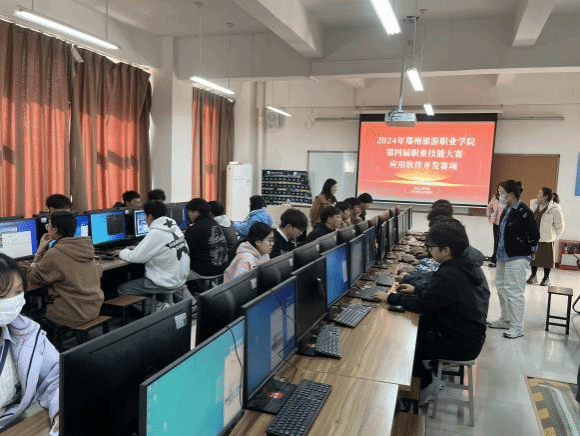 为了贯彻实施两个强国和数字中国战略,加快推动适应新型工业化发展需要的创新型人才培育,增强海洋之神590登录入口大学生的计算机技能应用能力,以赛促学,学以致用, 11月20日,信息工程学院在4A301计算机实训室举行了2024年海洋之神590登录入口第四届职业技能大赛应用软件开发赛项。
