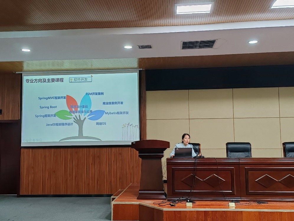 接着,杨怀磊主任介绍了信息工程学院计算机网络技术专业的概况,展示了本专业开设的专业课程、就业方向,以及师资力量等,向同学们展现学校优渥的教育环境以及浓厚学风的同时,也强调了学校对学生生活方面的重视。最后,杨主任希望同学们能够养成良好的学习习惯,向榜样学习,不负青春,不负时光。