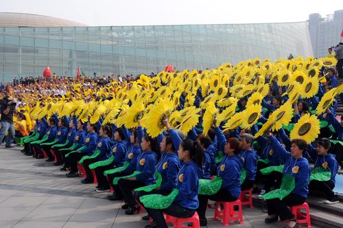 4月10日下午,我院组织100名学生参加了在郑东新区水幕广场举行的“激情广场·爱国歌曲大家唱”活动。此项活动由中共中央宣传部、中央文明办主办,中共郑州市委、郑州市人民政府承办,中央电视台主持人张泽群主持。现场有5000余名群众身着不同颜色的服装、手持花朵、彩带等,坐在规定的区域内,一起高唱红歌,歌唱伟大的祖国、歌唱美好的新生活。