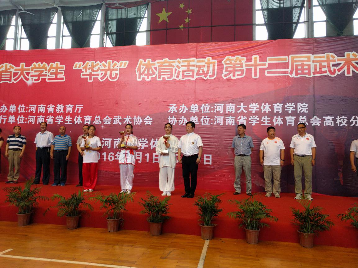 本次体育赛事是河南省大学生“华光”体育活动2016年系列比赛之一,由河南省教育厅主办,河南省学生体育总会协办。据悉,此次大赛优秀选手可代表河南赛区参加全国大学生武术锦标赛。此项赛事规模大、参赛人数多,层次高、影响深远,获奖师生为学院争得了荣誉,提升了学院社会影响力。