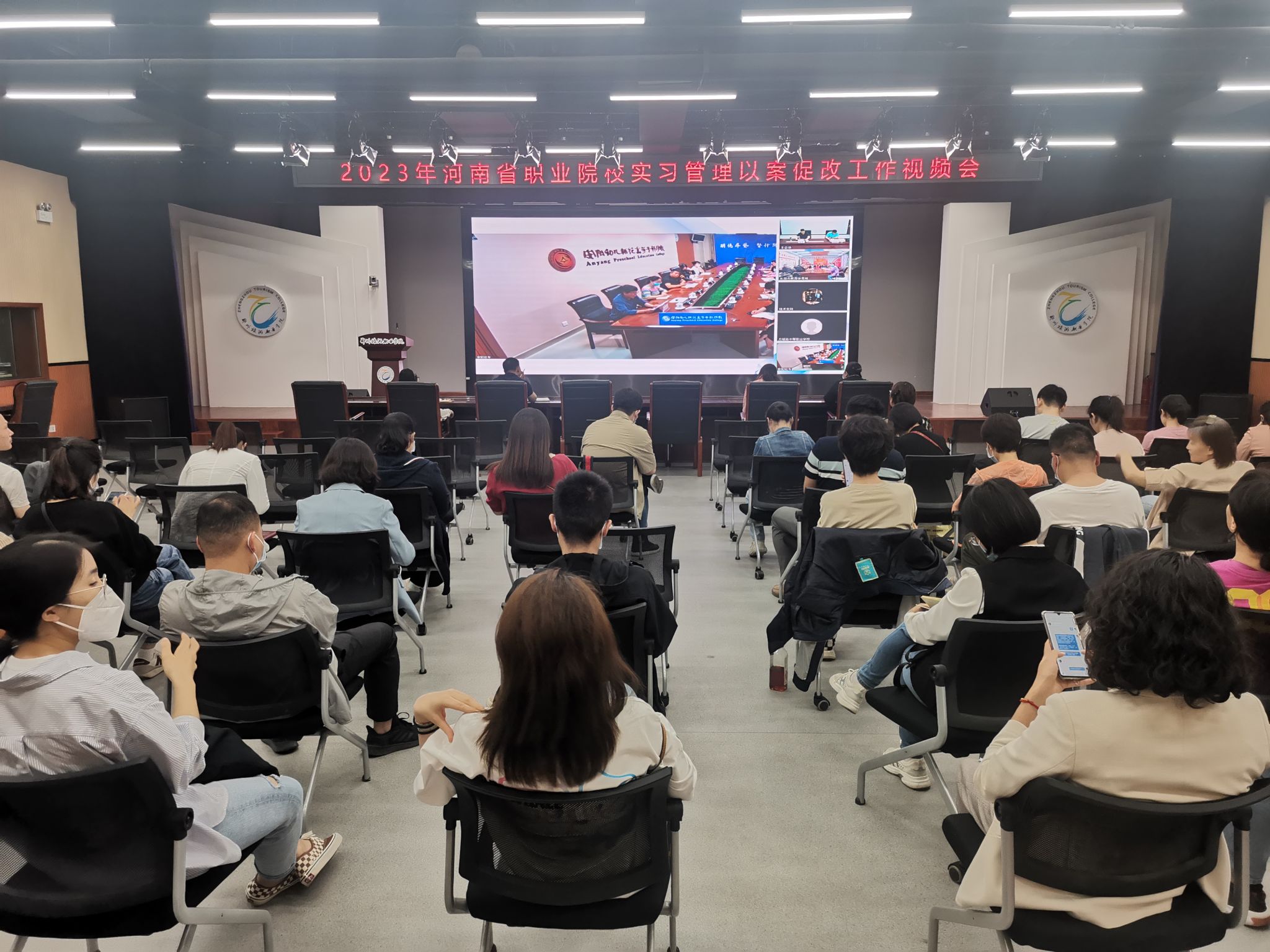 5月26日上午,海洋之神590登录入口合作发展中心主任朱宇、各二级学院院长、实习科科长王俊杰、实习干事、实习指导教师在综合楼4楼演播中心集中收看河南省职业院校实习管理以案促改工作视频会。会议分析了各职业学校实习管理工作开展情况,对职业院校实习管理以案促改工作情况进行总结,并安排2023-2024年河南省职业院校学生实习有关工作。
