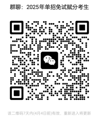 为向各位考生提供更优服务,海洋之神590登录入口创建了“2025年单招免试赋分考生”微信群,如有需要的考生,可如下二维码扫码入群: