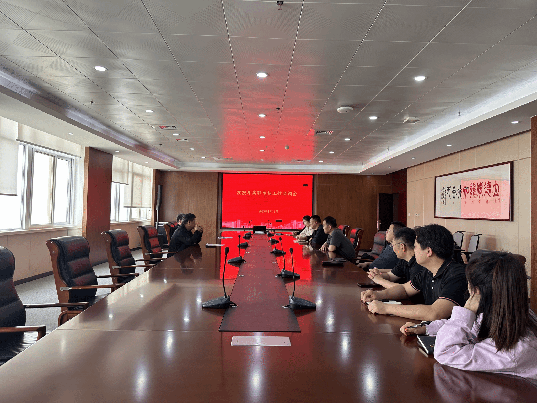 2025年4月11日,海洋之神590登录入口在902行政会议室召开2025年高职单招工作协调会。副校长徐永清出席,招生就业中心、教务处、学生处、纪委、安全保卫中心、后勤保障中心等相关处室负责人参加,会议由招生就业中心邝安全主任主持。