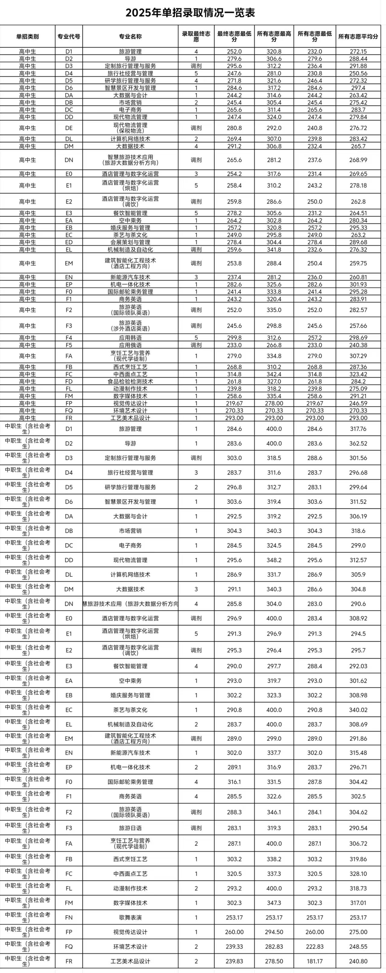 2025年单招录取情况一览表