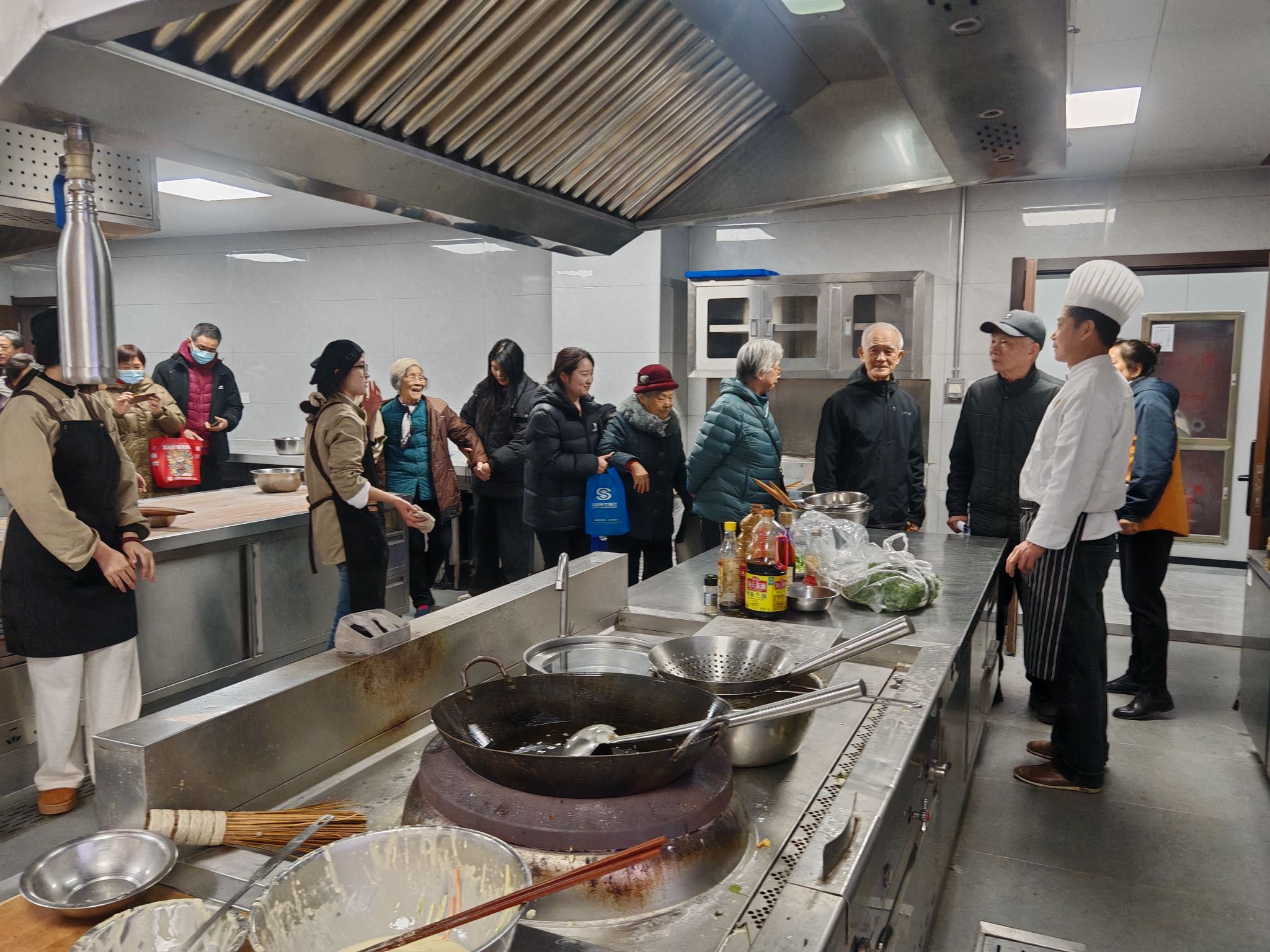 活动中,老同志们不仅参观了中式面点、烘焙食品、食品营养检测等实训室,还亲自参与了中式面点的制作。在实训室,他们与学生一起动手包混沌,并与学生亲切交流,分享制作技巧和注意事项,共同享受了制作成果。