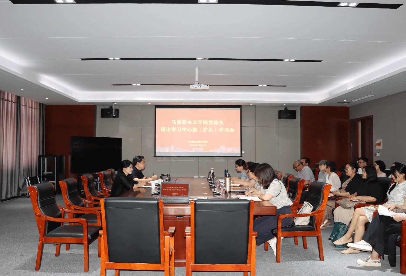 5月21日,校党委书记王艳红到党建联系点马克思主义学院开展专题学习指导。党委宣传部部长李立功主持会议,马克思主义学院全体教师党员参会。