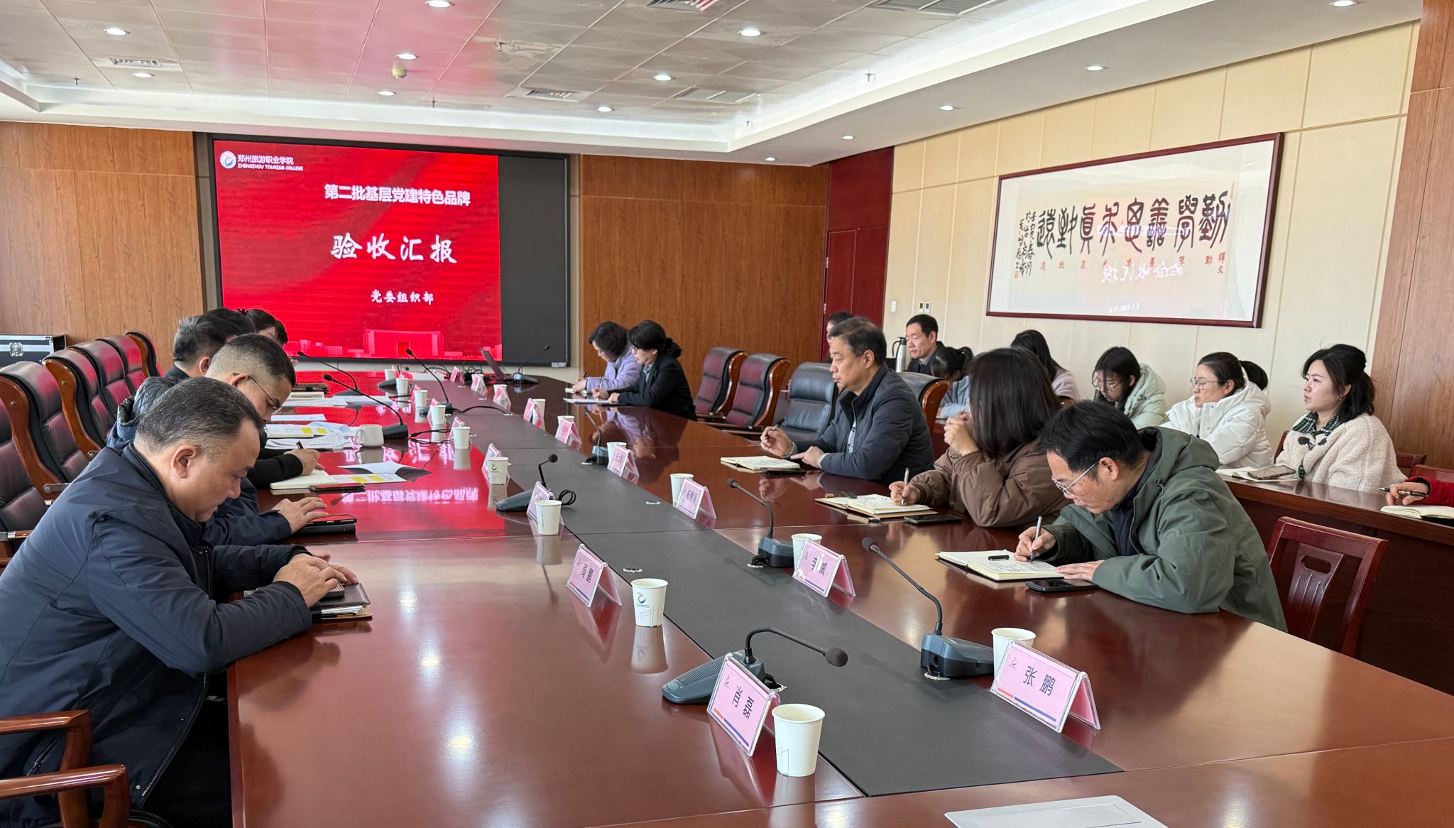 2026年1月15日上午,学校在行政楼1202会议室举办第二批基层党建特色品牌验收汇报会。党委副书记詹晓娅出席会议,各党总支书记、组织委员及本年度参选品牌负责人参加会议。会议由组织部副部长刘晓丹主持。